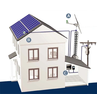 Controla la generación eléctrica del aerogenerador y paneles solares y el estado de la batería. Previene la sobrecarga y descarga de las baterías.