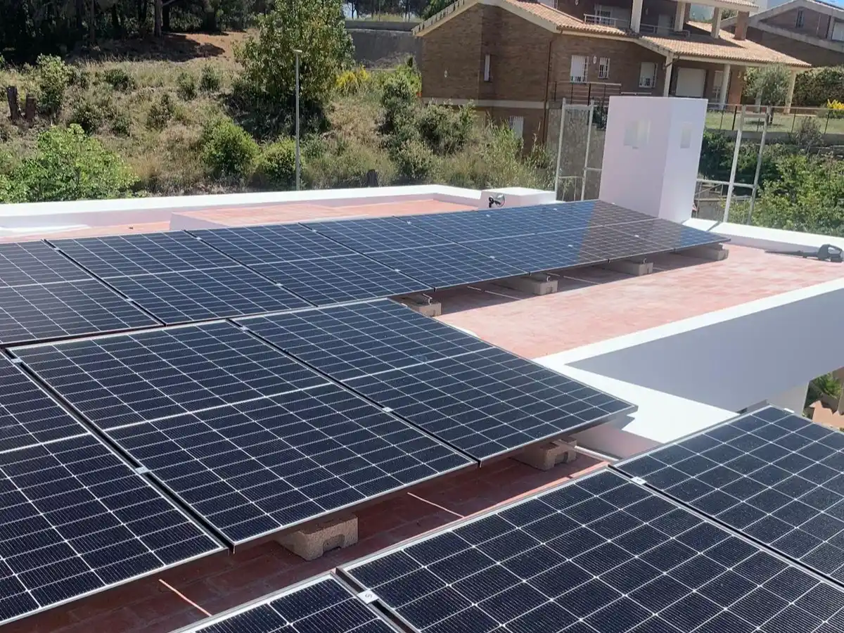Paneles solares instalados sobre la azotea de una vivienda moderna, diseñados para autoconsumo energético eficiente.